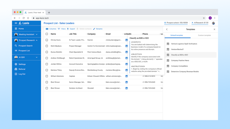 Laxis AI Prospect Research is a rough diamond. The UI is a bit messy because they are pivoting from a meeting tool to a sales tool, but the underlying value is undeniable.